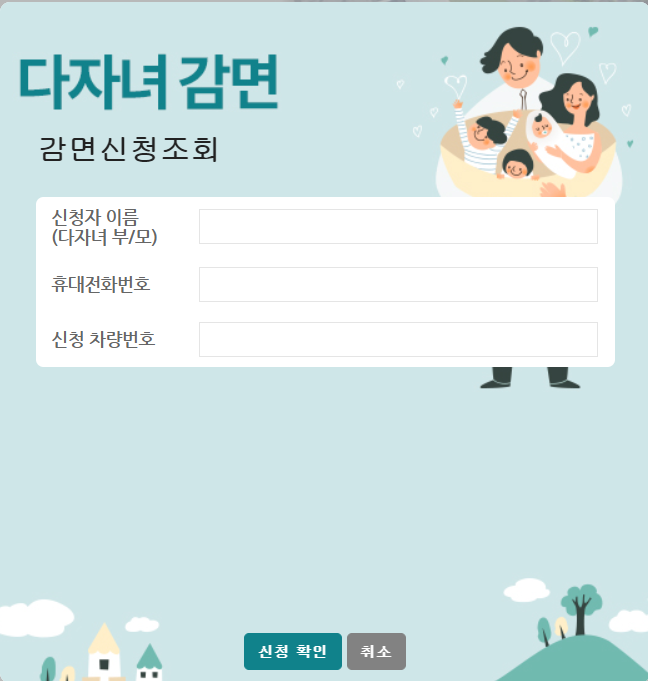 신청자 이름과 휴대전화, 차량번호를 입력해서 확인합니다.