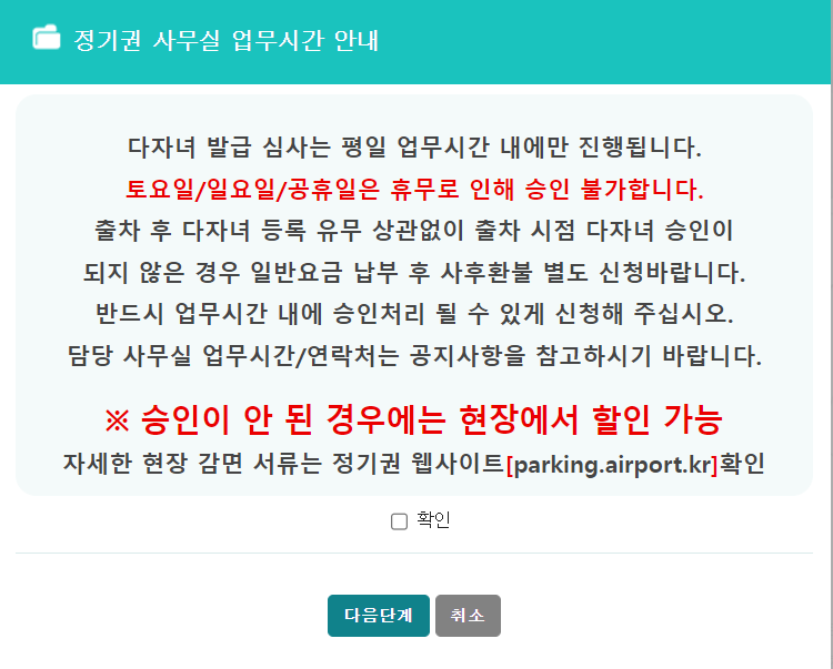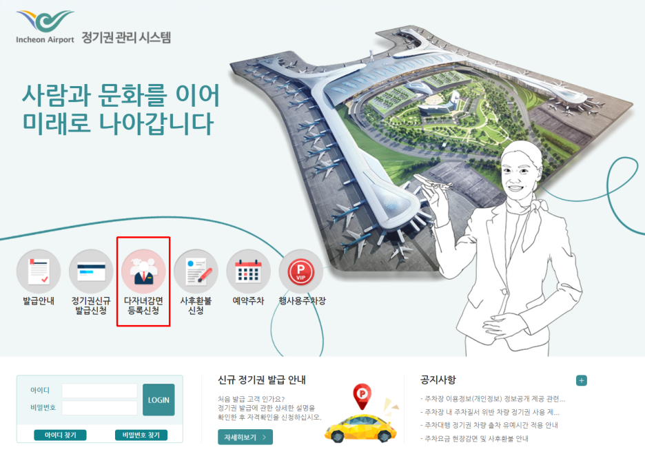 인천공항 정기권 관리 시스템으로 접속 합니다.