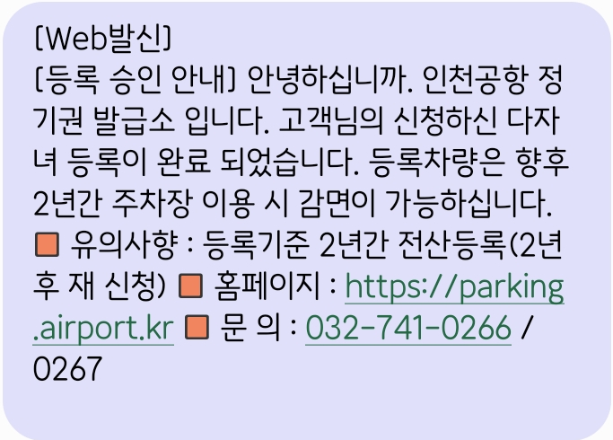 다시 서류를 보내고 난 다음에 등록 승인되었다는 문자가 왔습니다.